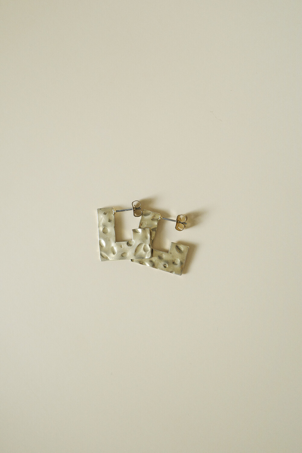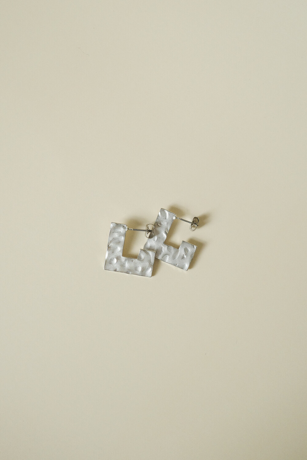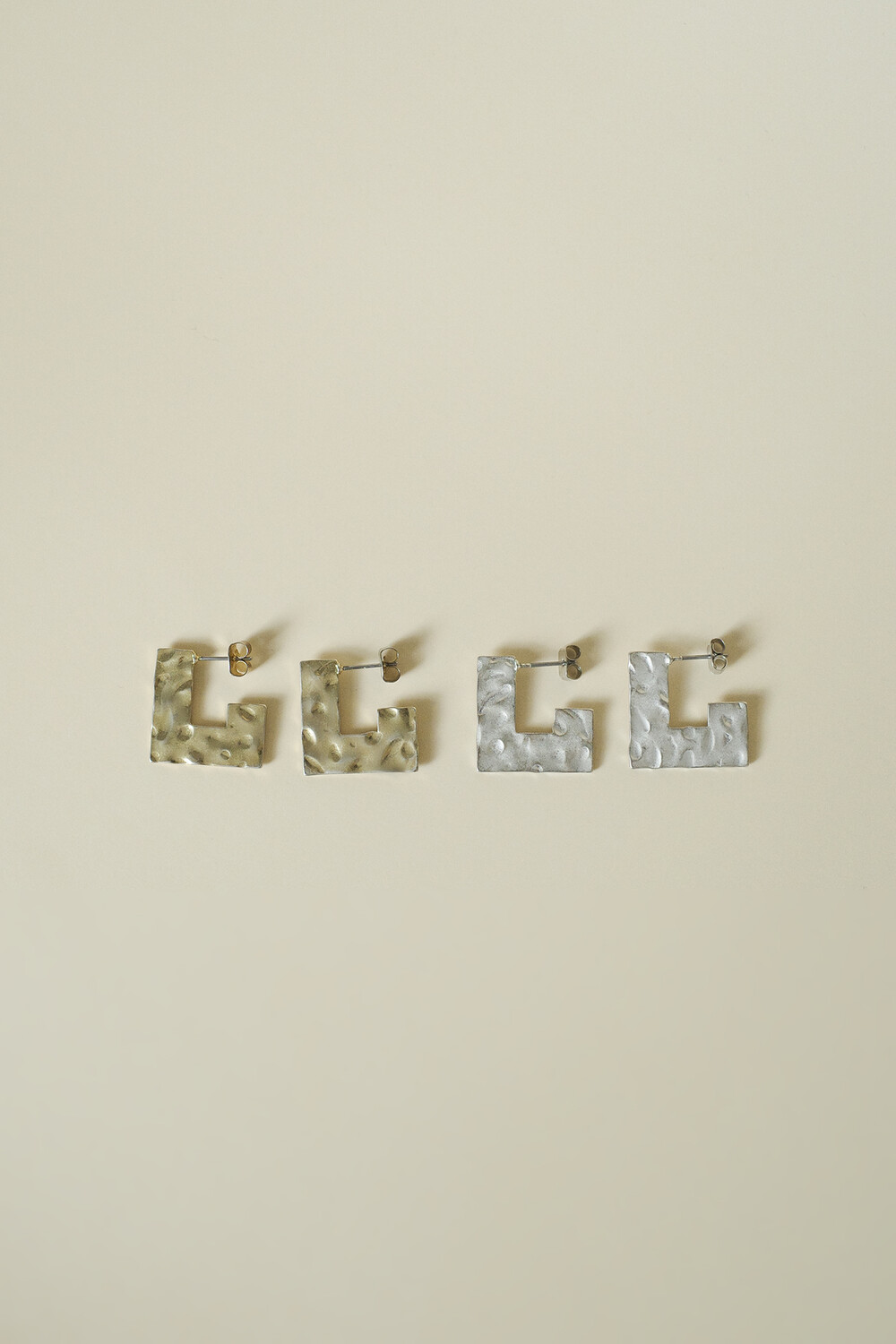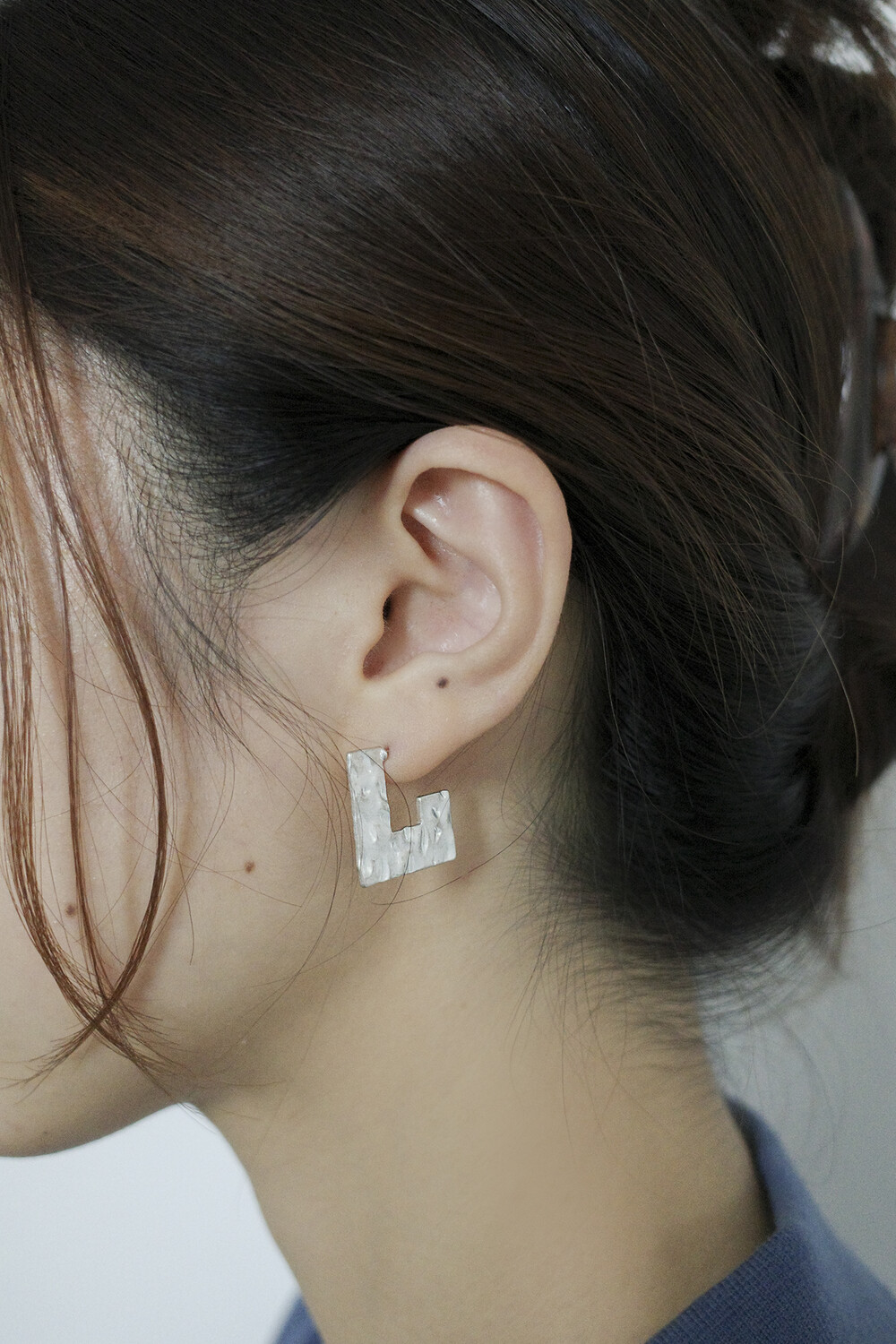 올록볼록한 텍스처와 각진 형태가 매력적인 귀걸이입니다.