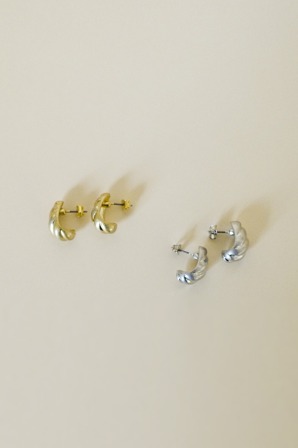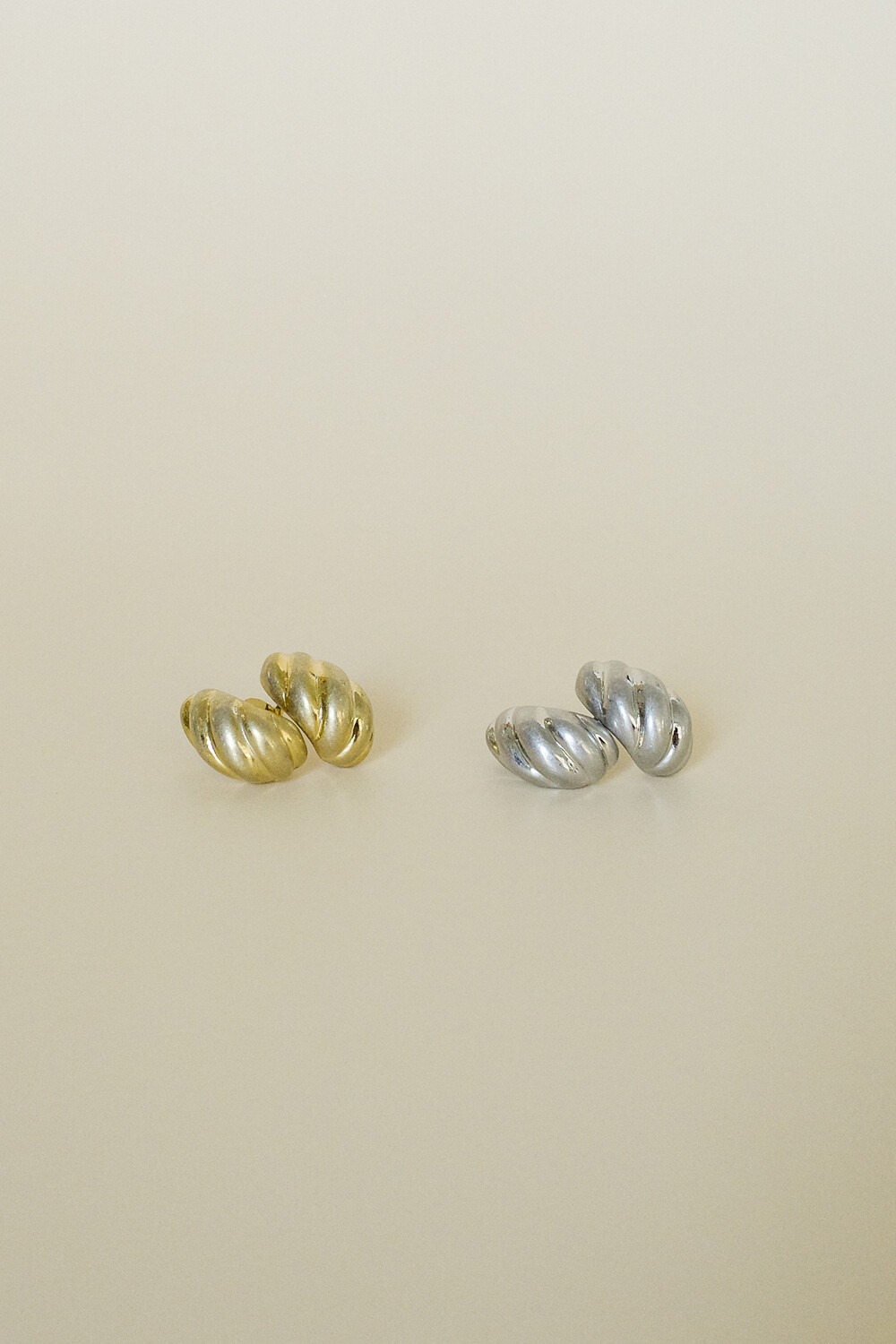 무광과 유광이 적절히 섞인 표면의 질감과 볼드한 디자인이 조화로운 귀걸이입니다.