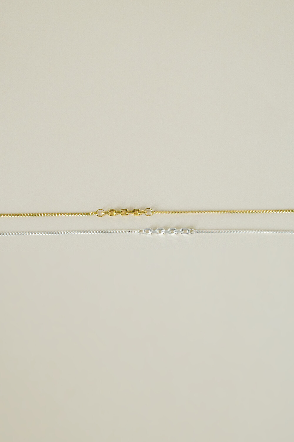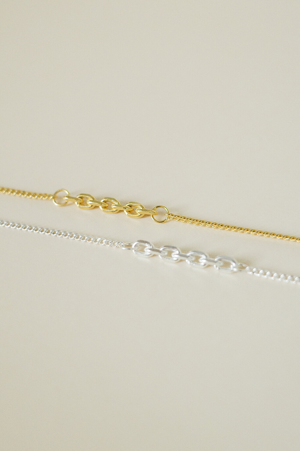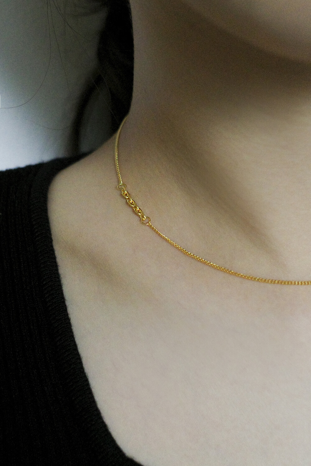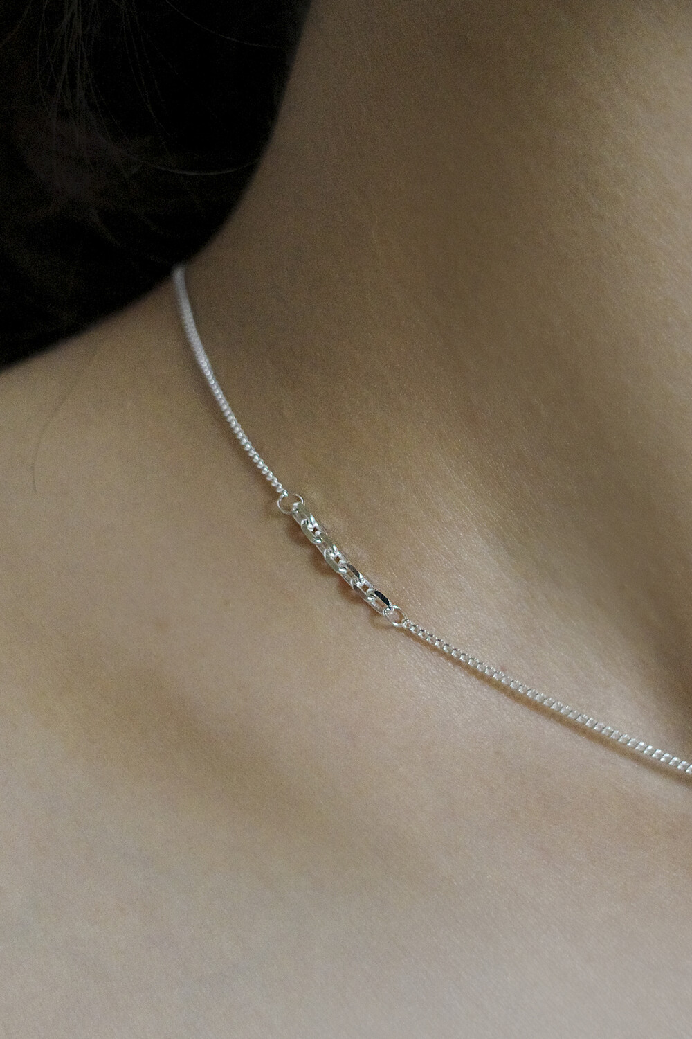 두 가지 타입의 체인이 대비되어 심플함 속에 포인트를 준 디자인의 목걸이입니다.