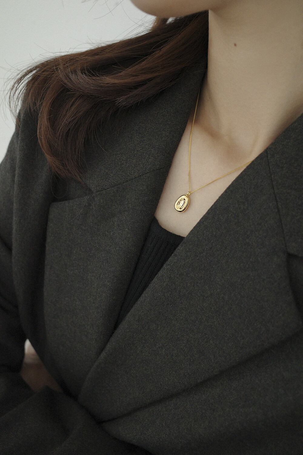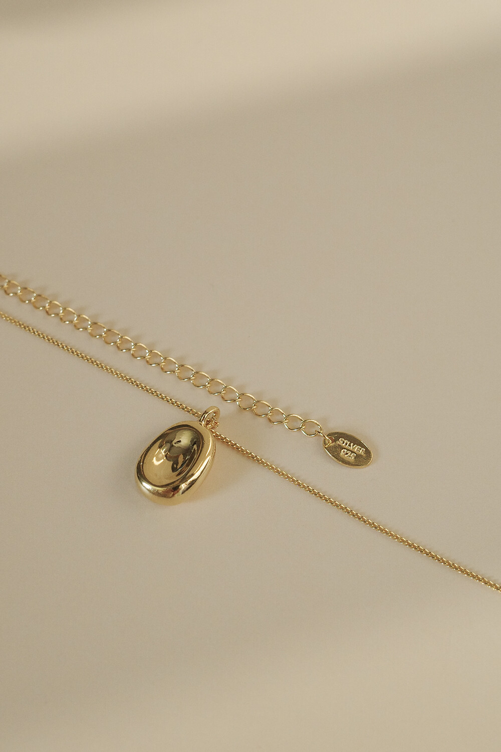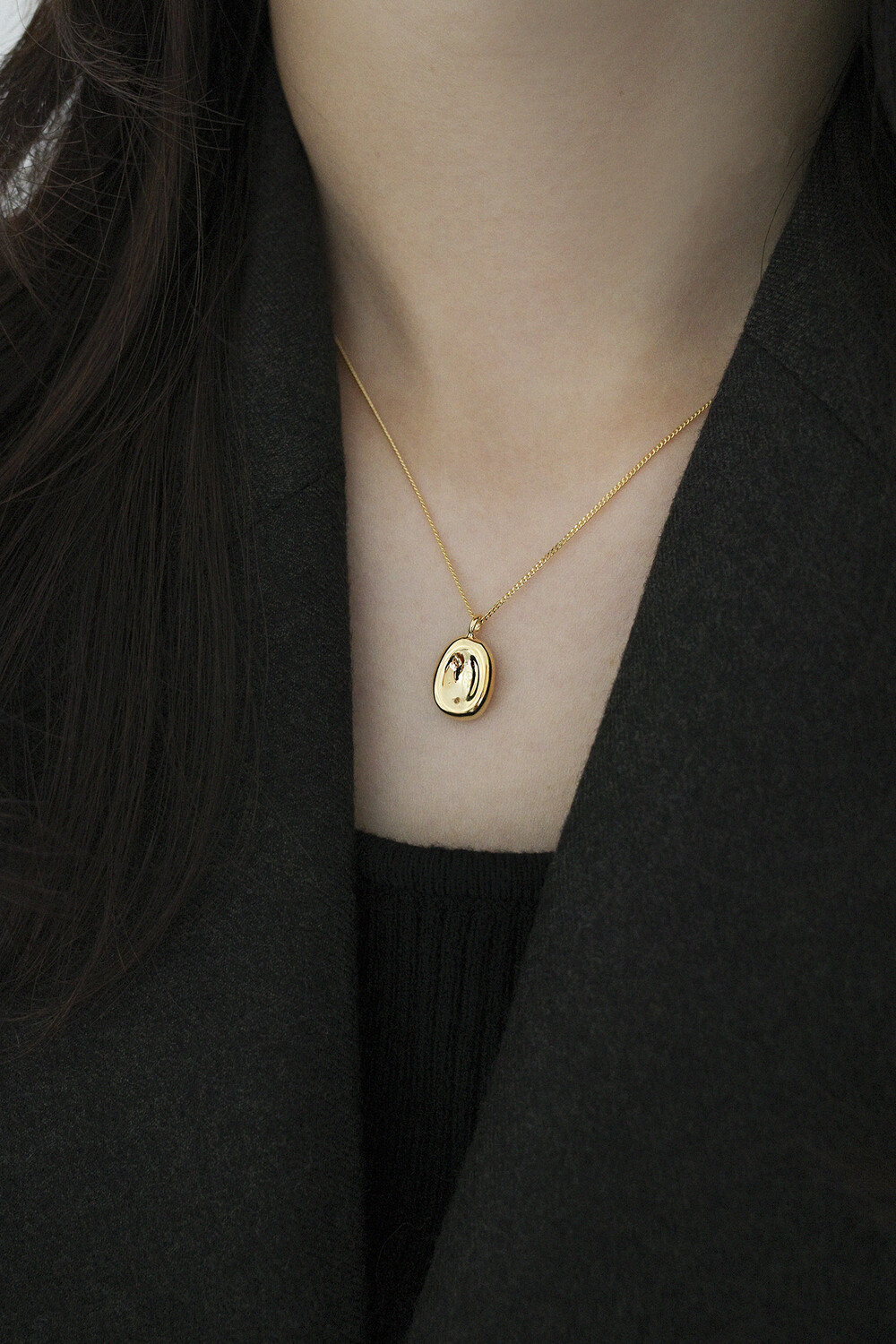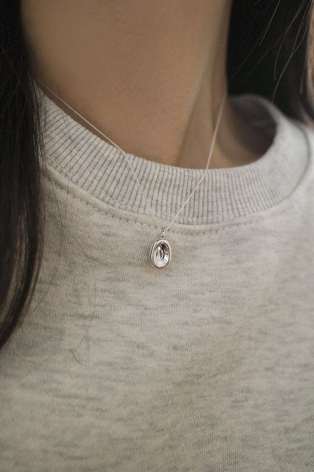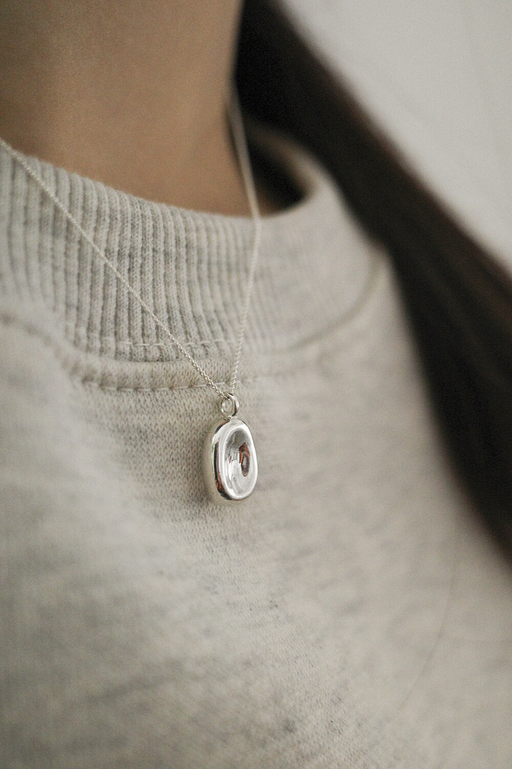 오목한 원형 디자인의 깔끔한 목걸이입니다.