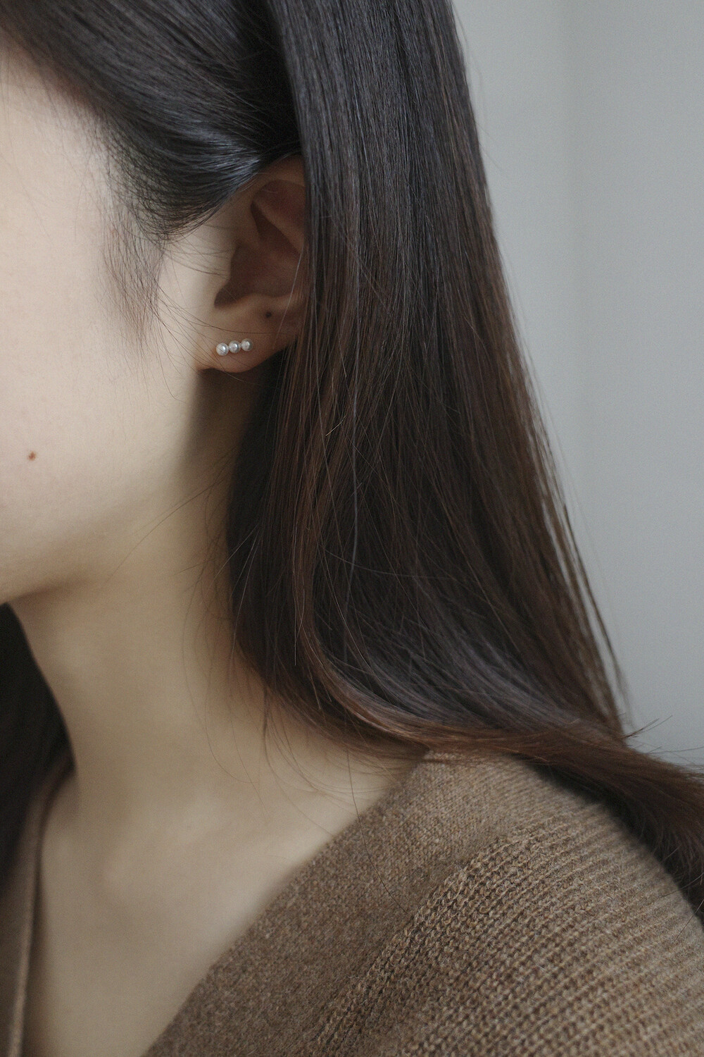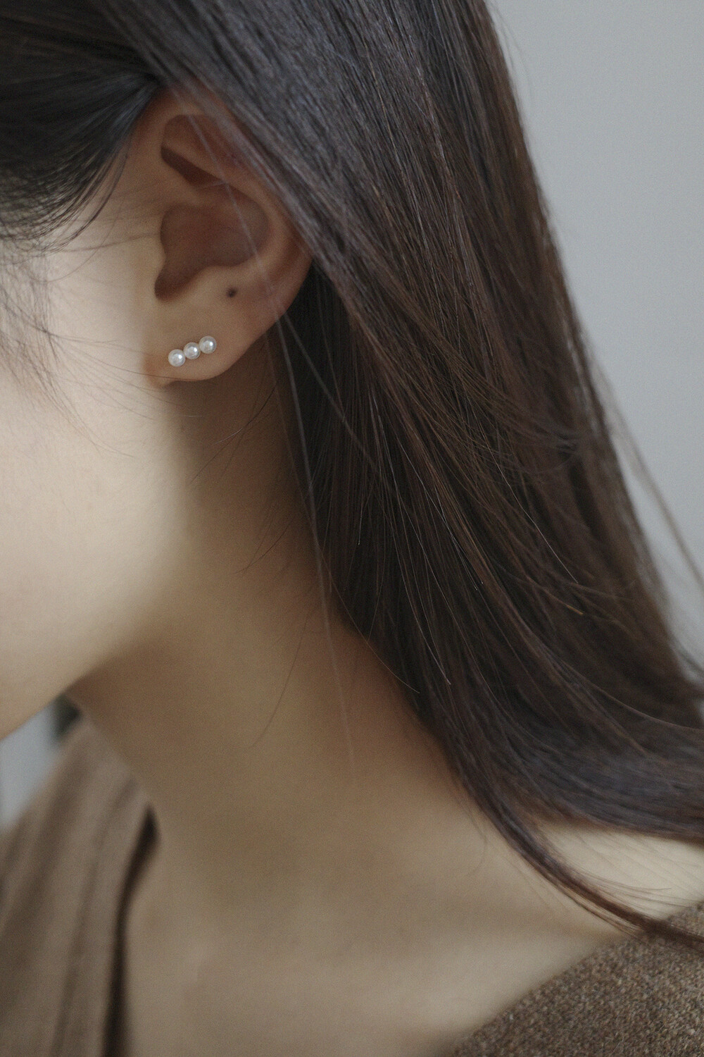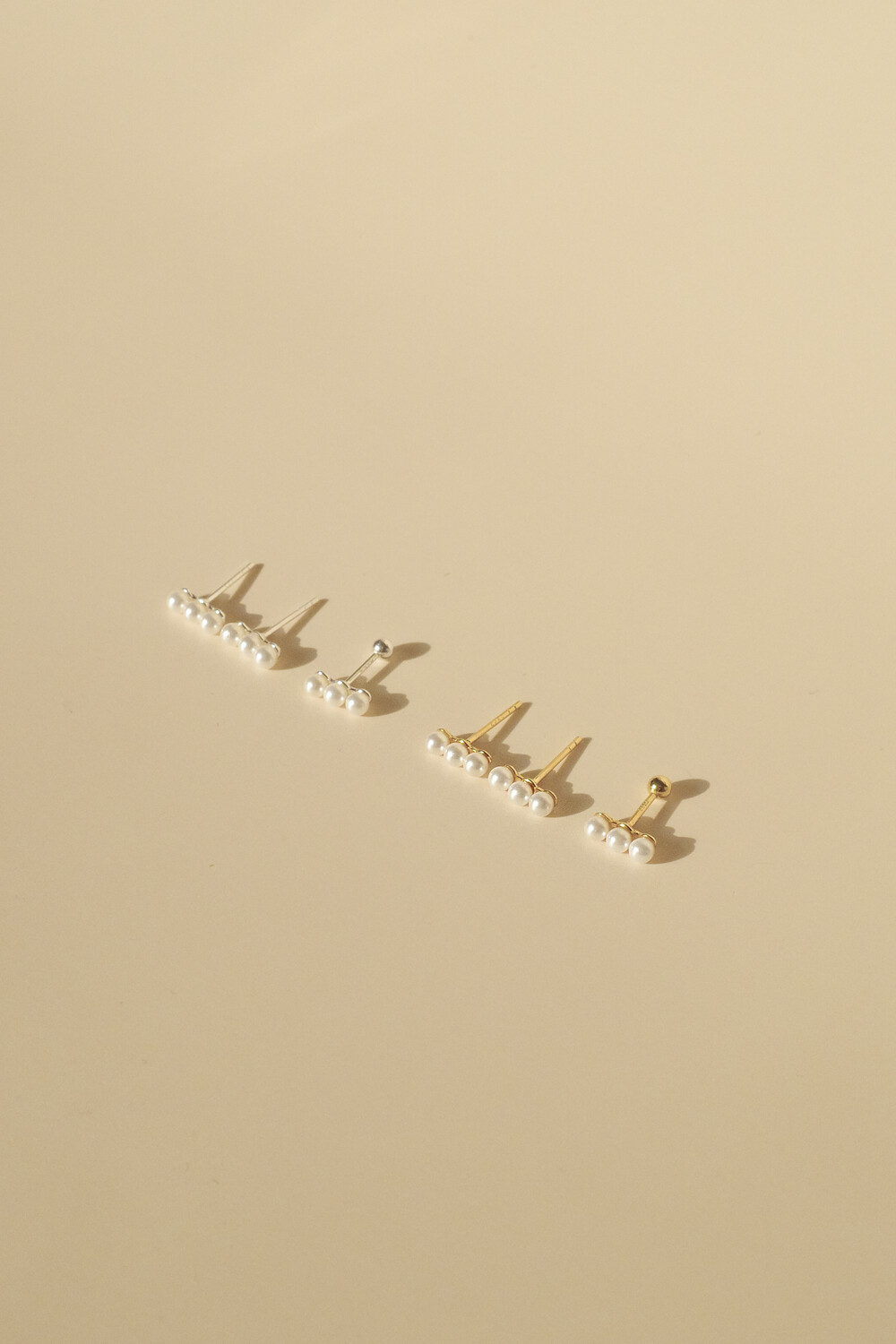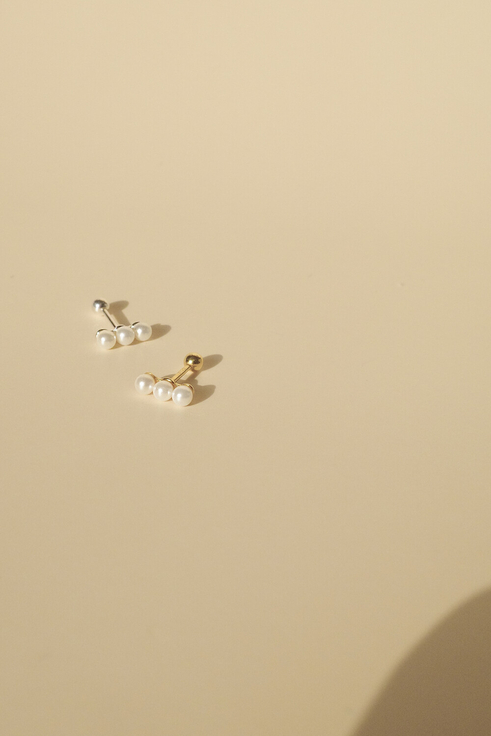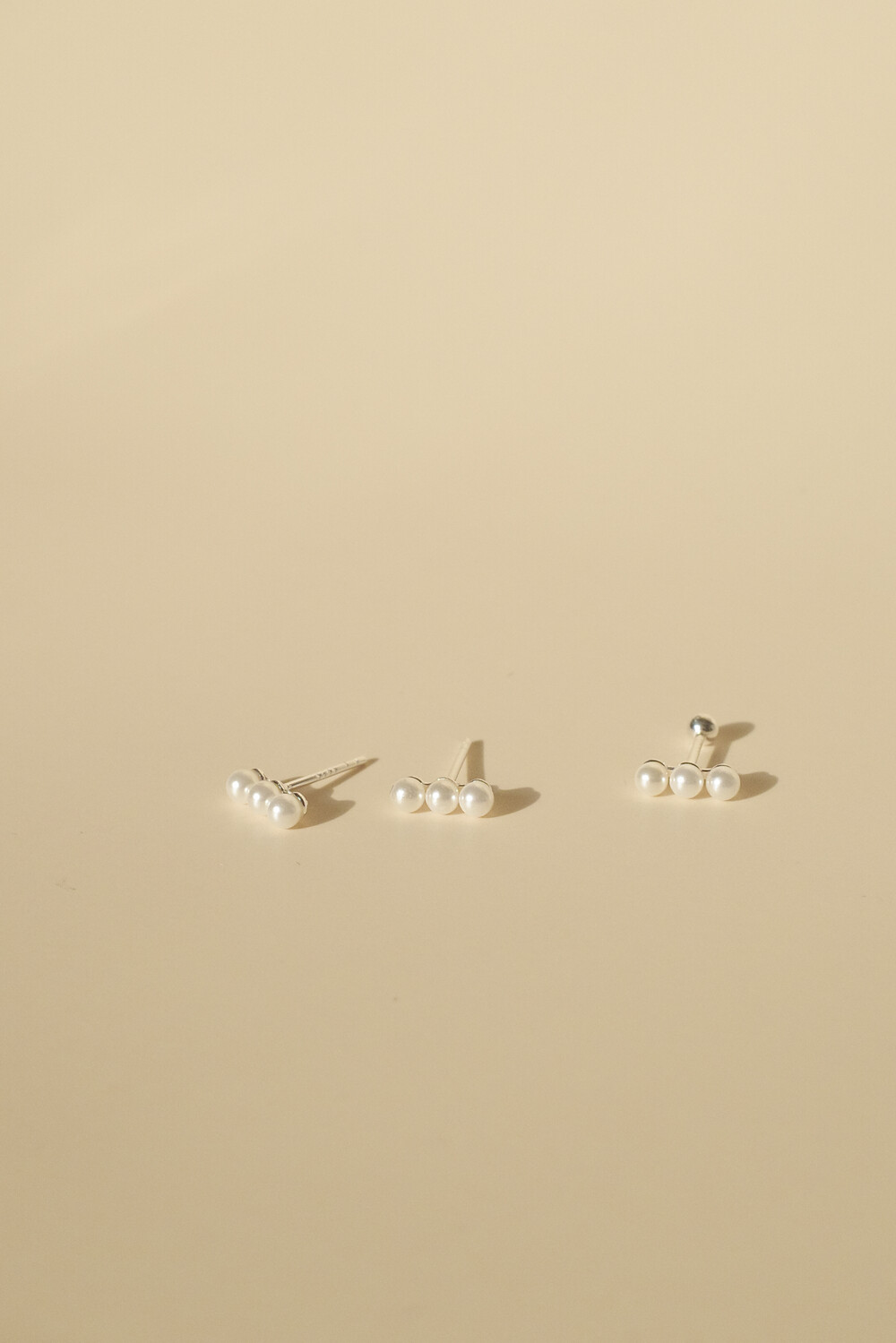 (925) 3 Pearl Earrings/Piercing (2colors)