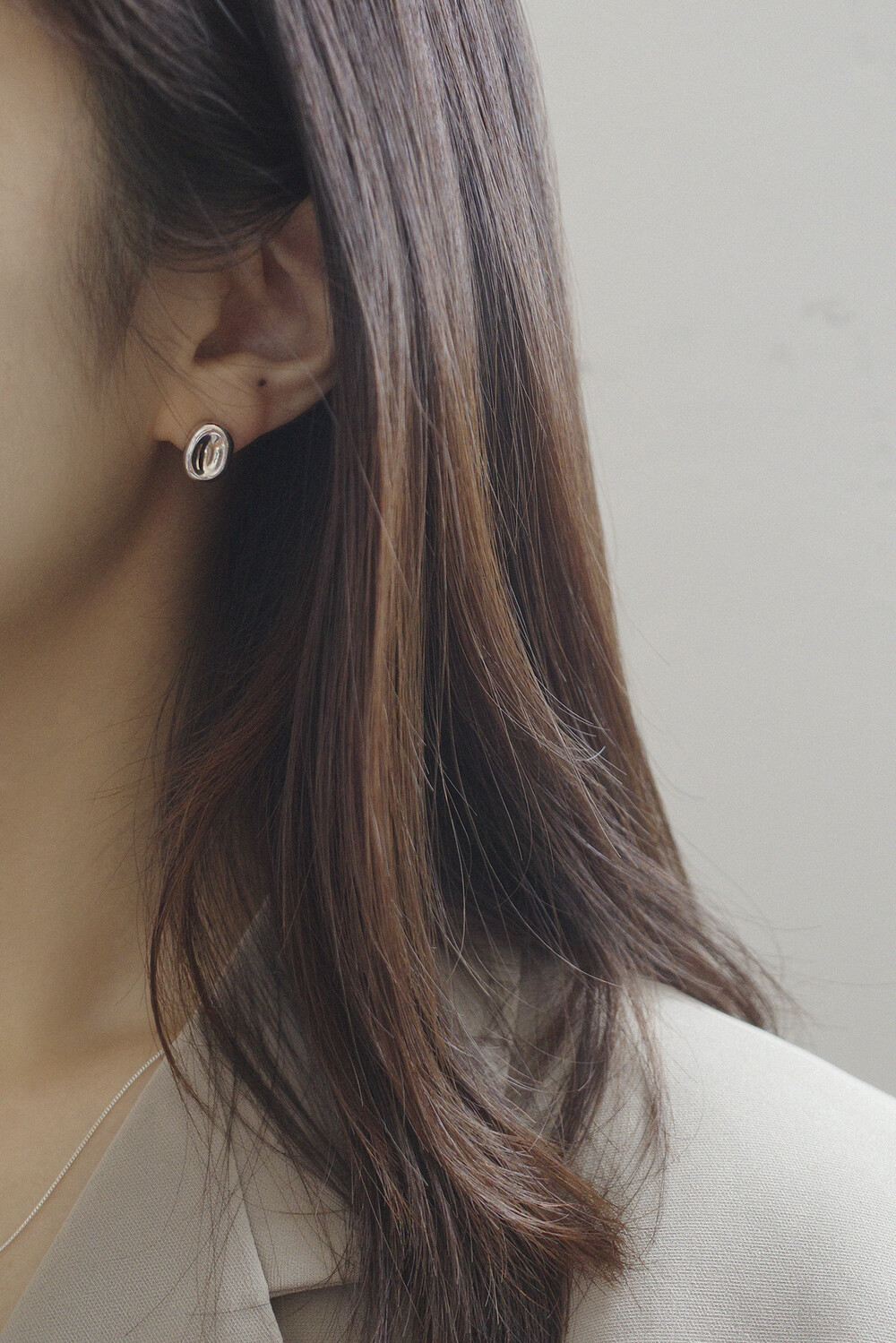 오목한 원형 디자인의 깔끔한 귀걸이입니다.