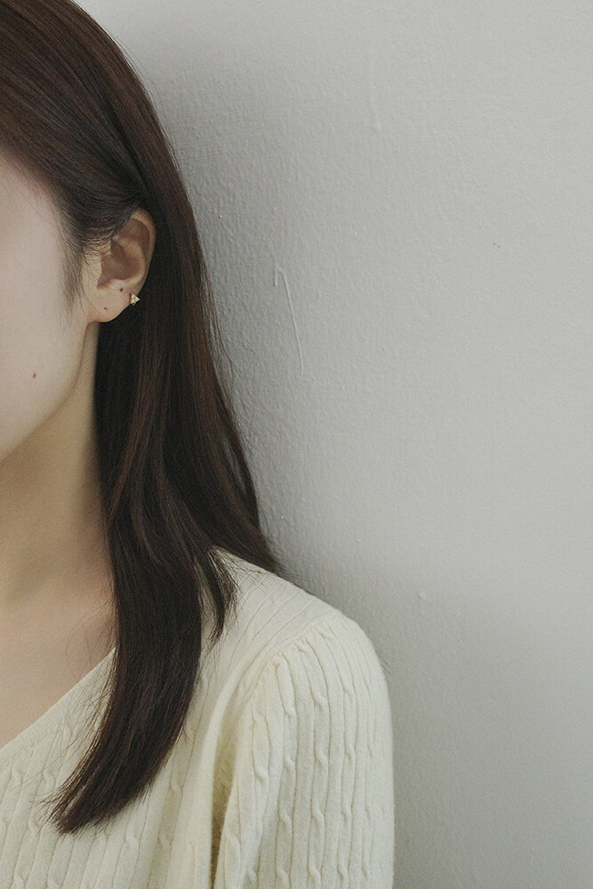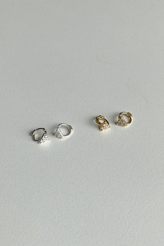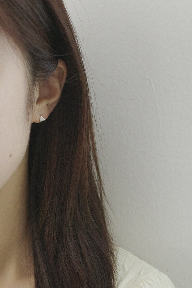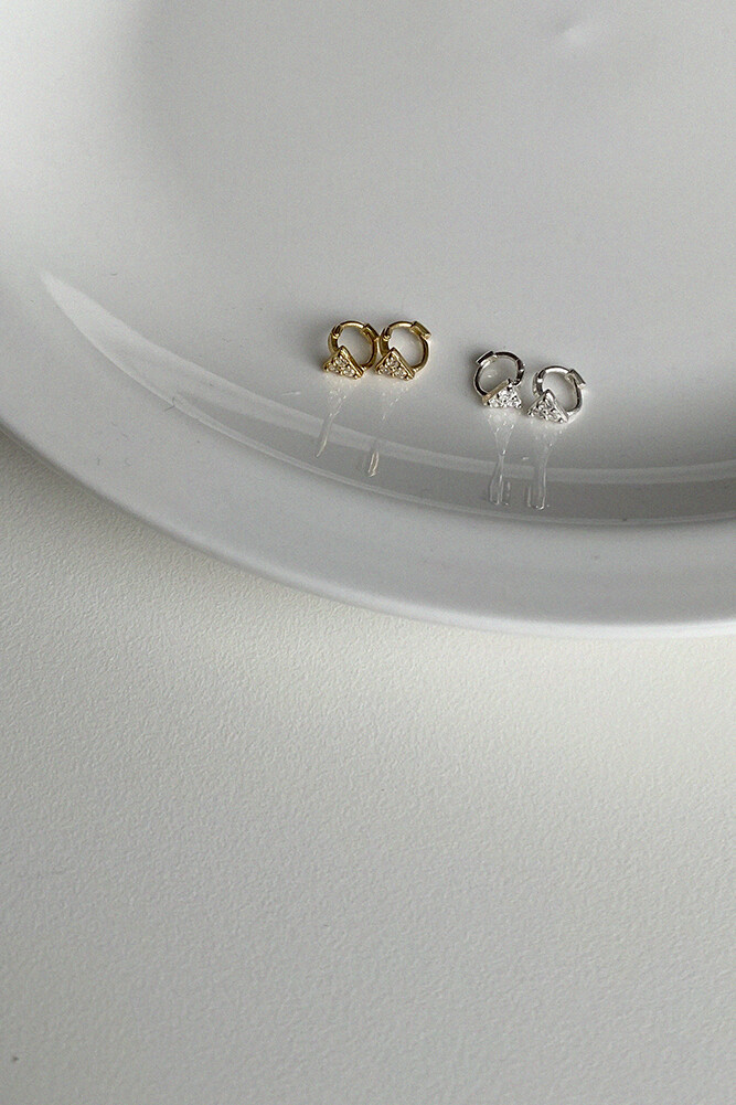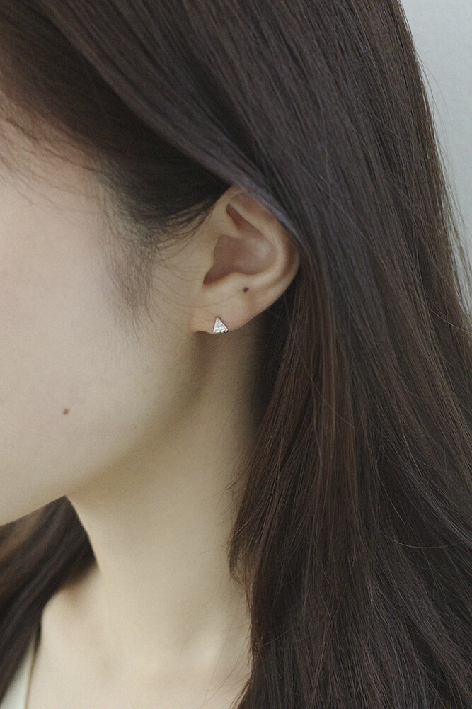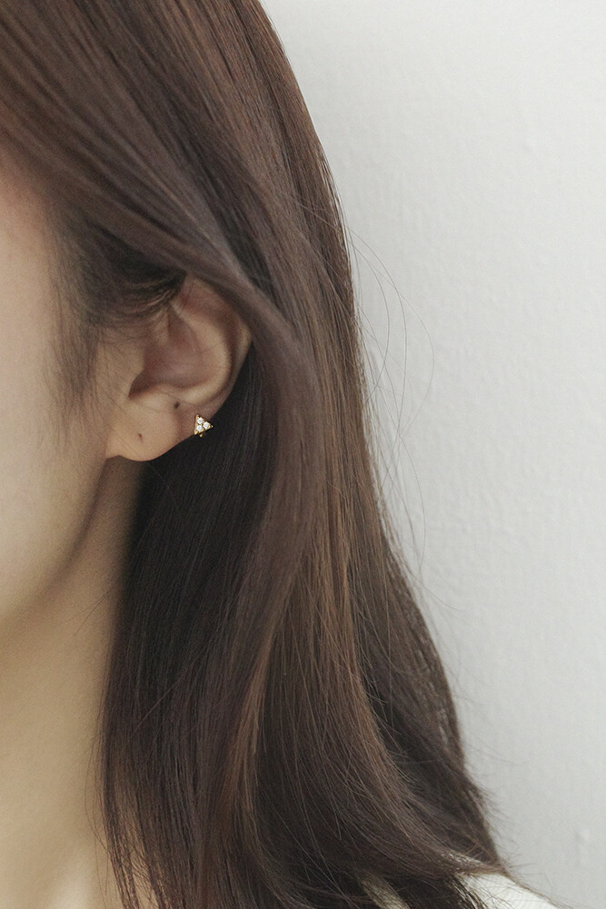 정삼각형 위로 세팅된 3개의 큐빅이 반짝이는 원터치 귀걸이입니다.