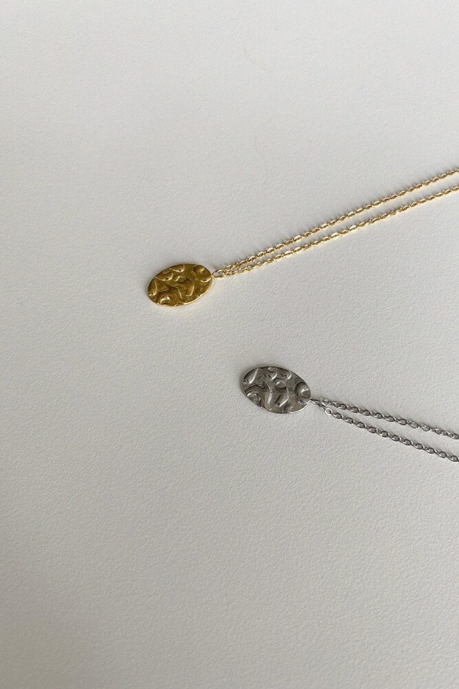 양각 무늬의 펜던트가 돋보이는 써지컬 목걸이입니다.