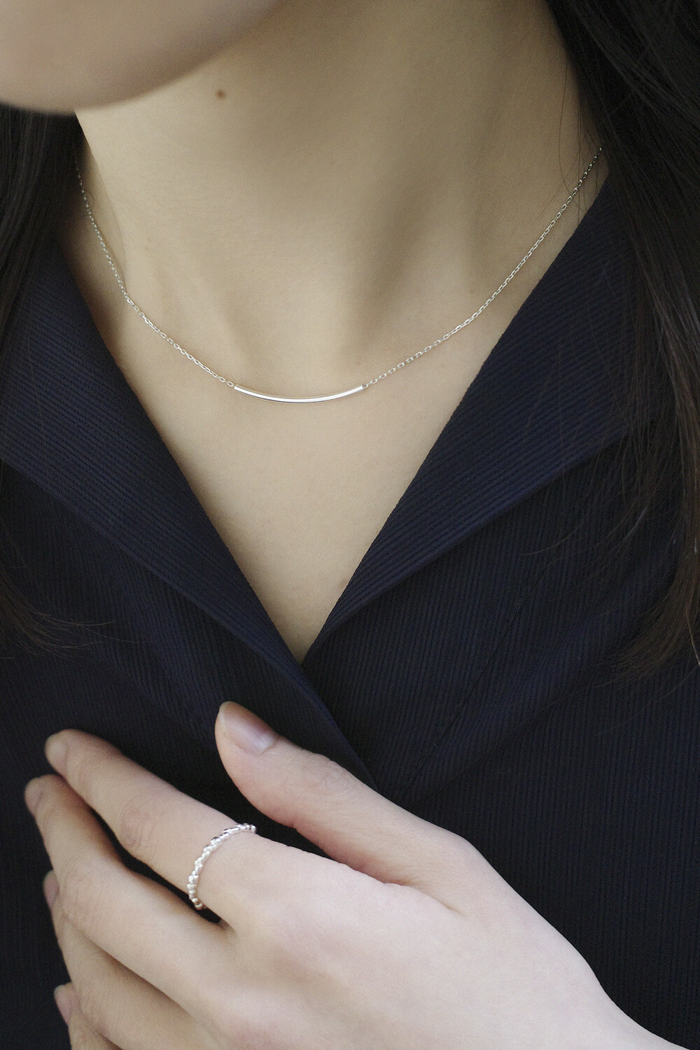 정적이고 미니멀한 무드가 담긴 목걸이입니다.