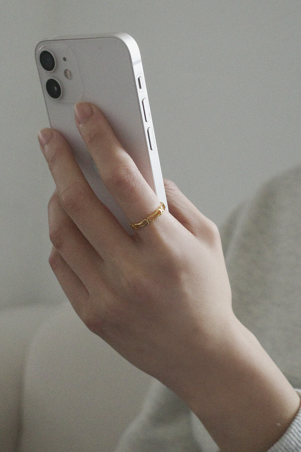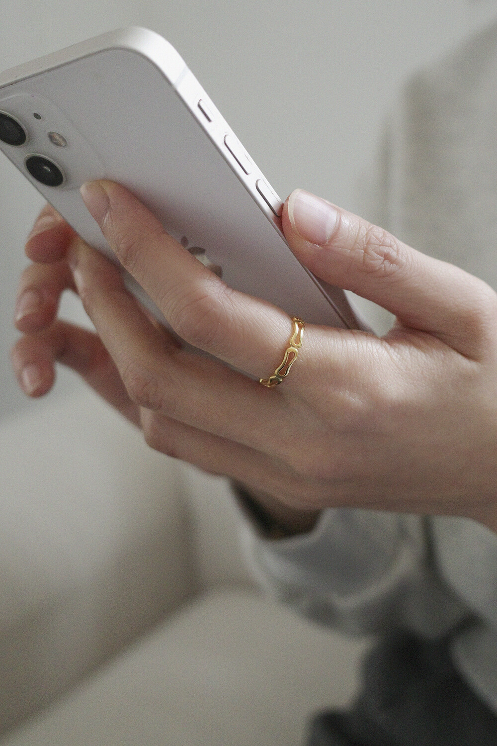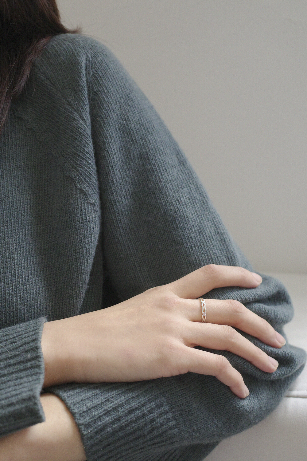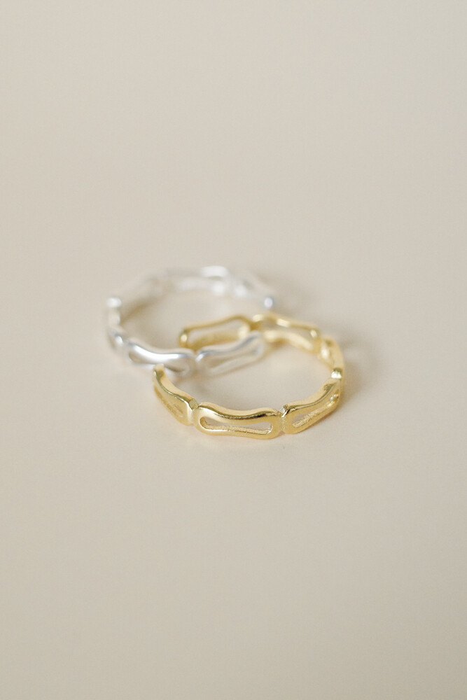 둥글둥글한 라인 도형이 끊어질 듯 연결되는 유니크한 디자인의 반지입니다.